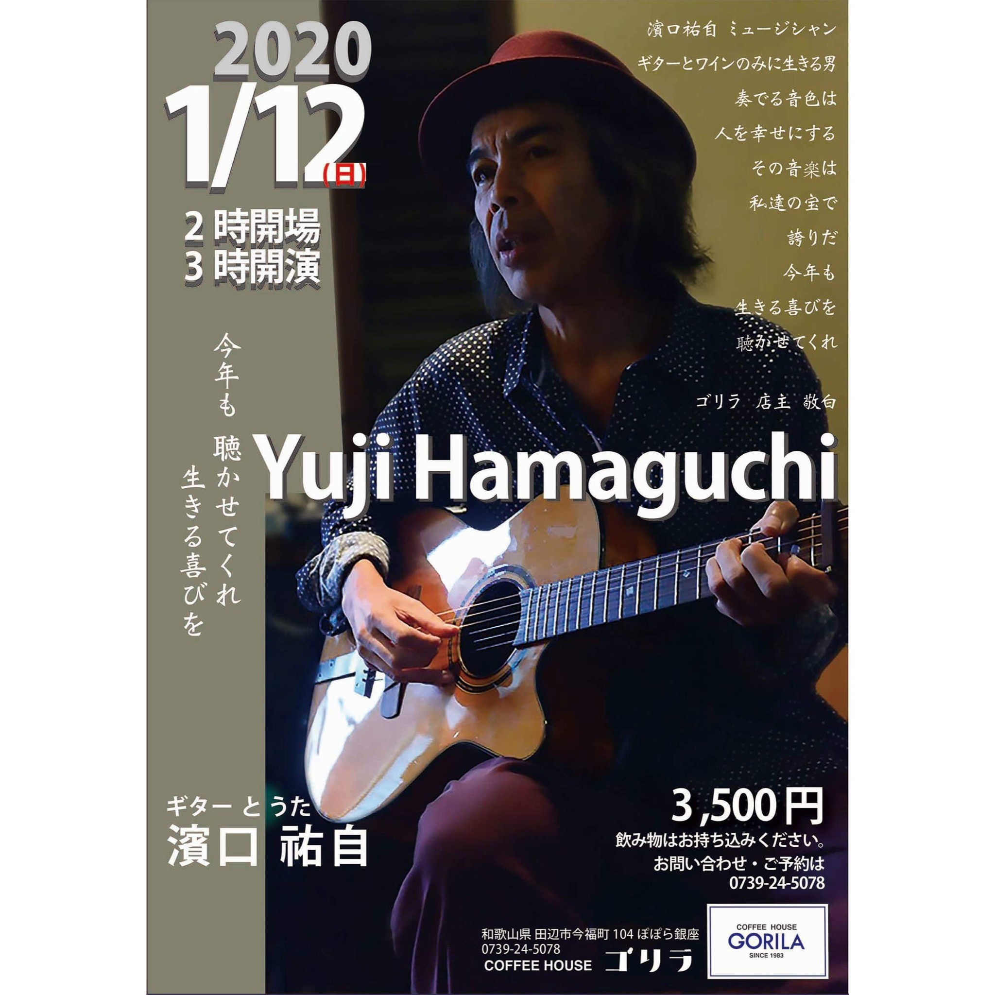 2020年1月12日(日)はブルースギタリスト濱口祐自さんによる新春ライブです。